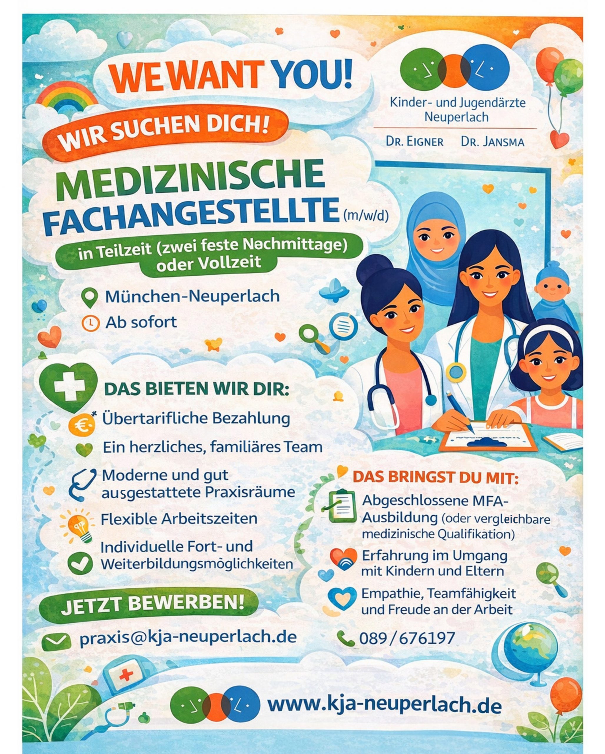 Schicke Deine Bewerbung gleich an praxis@kja-neuperlach.de und los geht´s in unserem tollen Team!